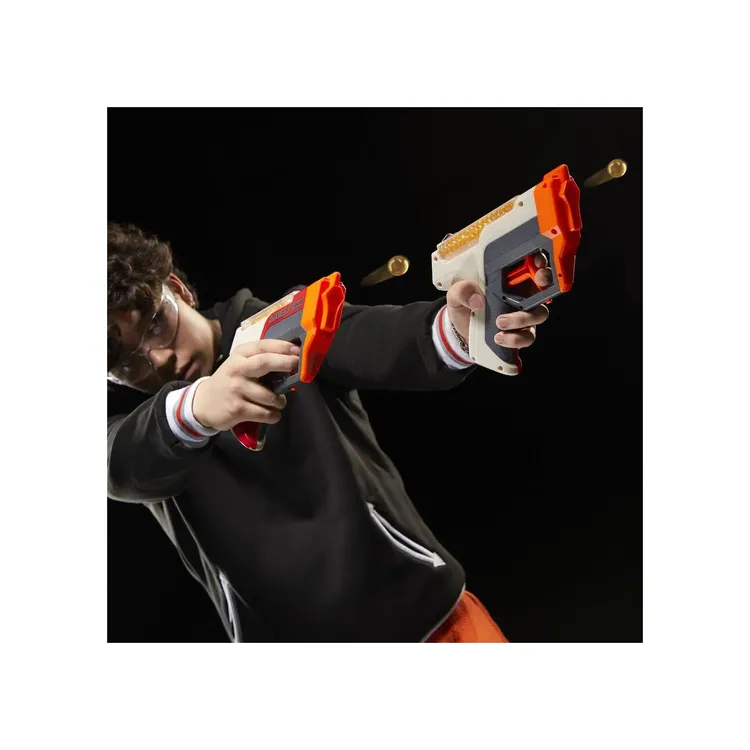 Incluye: 2 lanzadores, 1 sobre de 5000 recargas, 2 pares de lentes de protección e instrucciones.