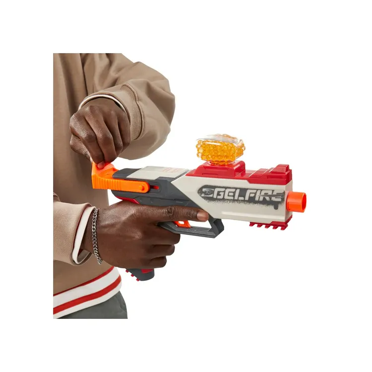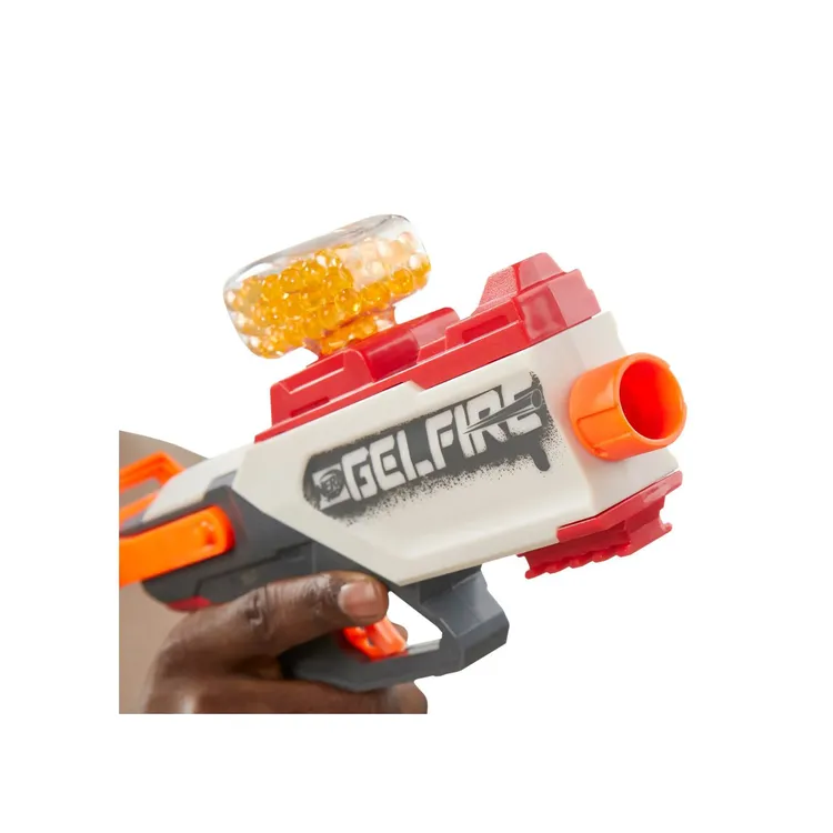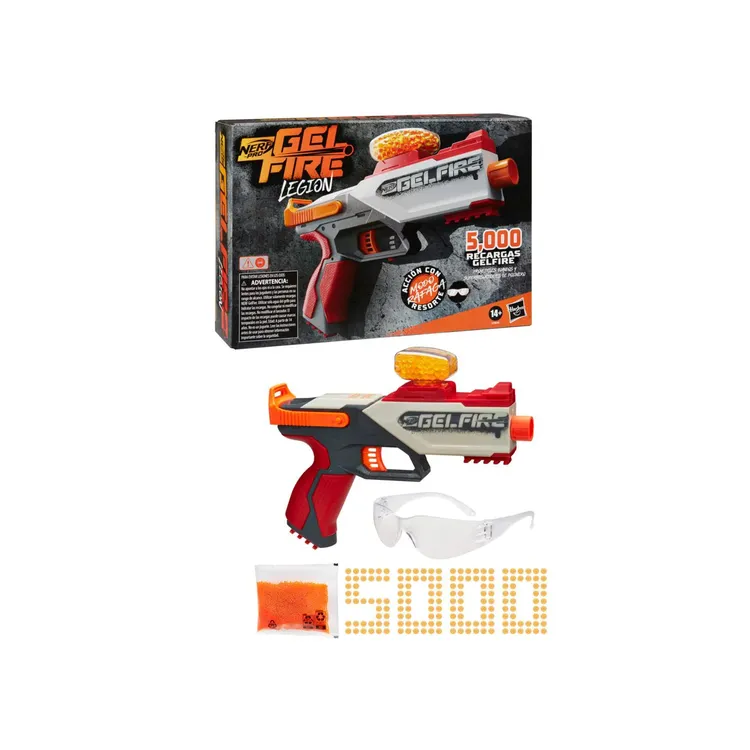 A partir de 14 años. PARA EVITAR LESIONES EN LOS OJOS: ADVERTENCIA: No apuntar a los ojos ni a la cara. El uso de lentes es obligatorio en todo momento para los jugadores y las personas en su rango de alcance. Utilizar solamente recargas NERF GelFire oficiales. Utilizar solamente agua del grifo para hidratar las recargas. No congelar ni modificar las recargas. No modificar el lanzador. El impacto de las recargas puede causar marcas temporales en la piel. A partir de 14 años. No es un juguete. Leer las instrucciones antes de usar para obtener información importante sobre la seguridad. ATENCIÓN: Riesgo de incendio y quemaduras. No abrir, aplastar, calentar a más de 45 °C ni incinerar. Seguir las instrucciones del fabricante. No ingerir. Mantener alejado de las mascotas. Las recargas pueden manchar.