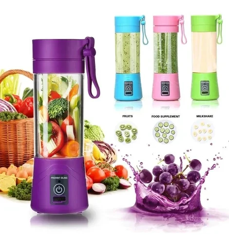 Tamano del producto: 24 x 7.5 cm Volumen de la taza: 380ml Peso del producto: 440 grs Material de la base: ABS Calidad alimentaria Material hoja: acero inoxidable Rotación del motor: RPM Voltaje de funcionamiento: 3.7 V Capacidad Bateria: mAh Tiempo de carga: 3 hrs aproximadamente Recarga mediante USB Permite licuar bebidas con fruta y polvo debido a su alto nivel de potencia logrando así una bebida perfecta