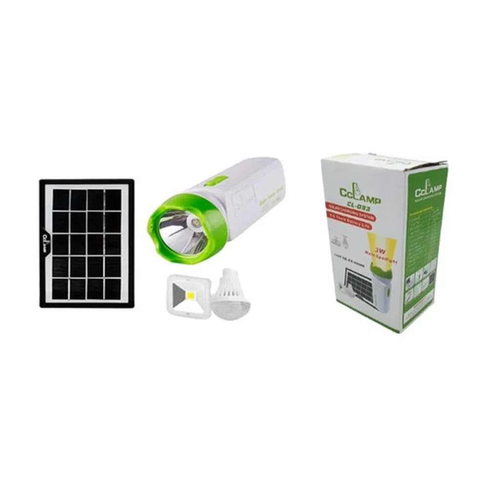 Con este Kit Panel Solar, puedes conectar dos bombillos para que ilumines tu hogar, finca, bodega, o el lugar que necesites. También puedes recargar tu celular o tablet, incluye cable multiusos para cargar una gran variedad de dispositivos. Puedes recargar la batería del kit poniendo el panel al sol. Adicionalmente incluye una mini lámpara de escritorio que puedes conectar a la linterna módulo principal para leer con comodidad en donde estés.