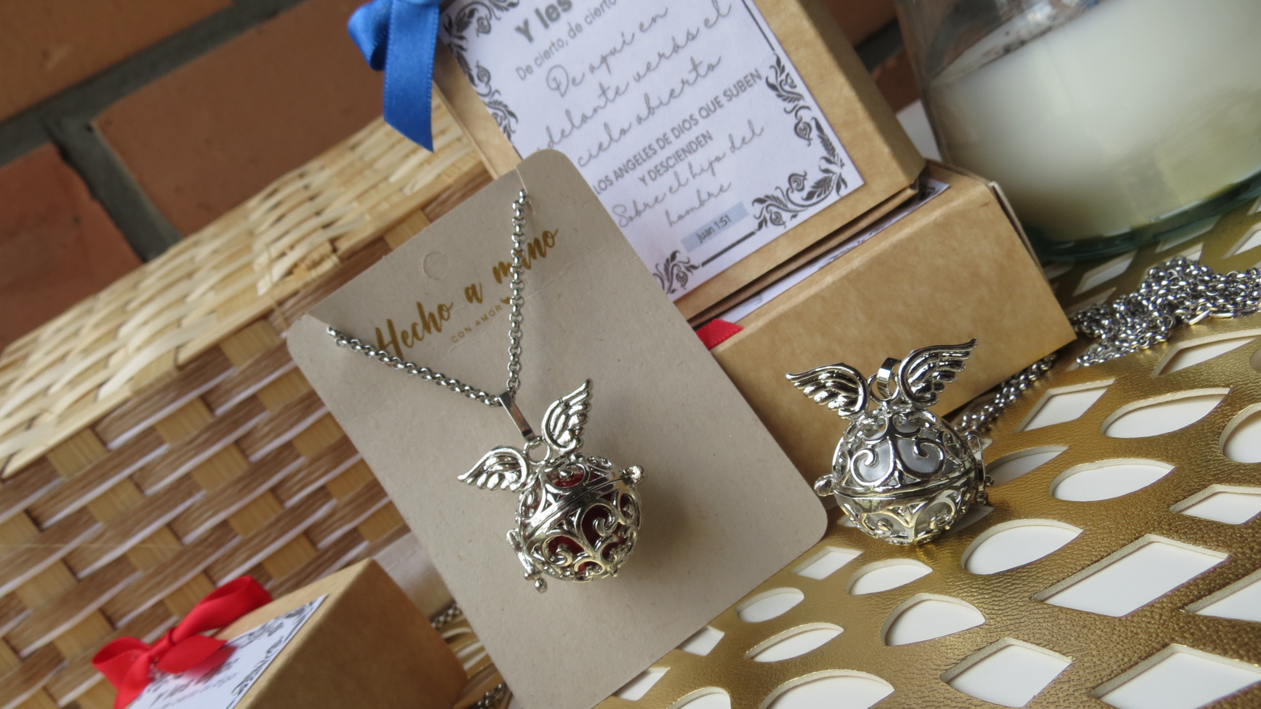 Nuestro llamador está fabricado en acero y tallado a mano este tiene una medida de 3cm Adentro lleva una esfera es un cascabel que emite un lindo sonido este llega de diferente color 😇