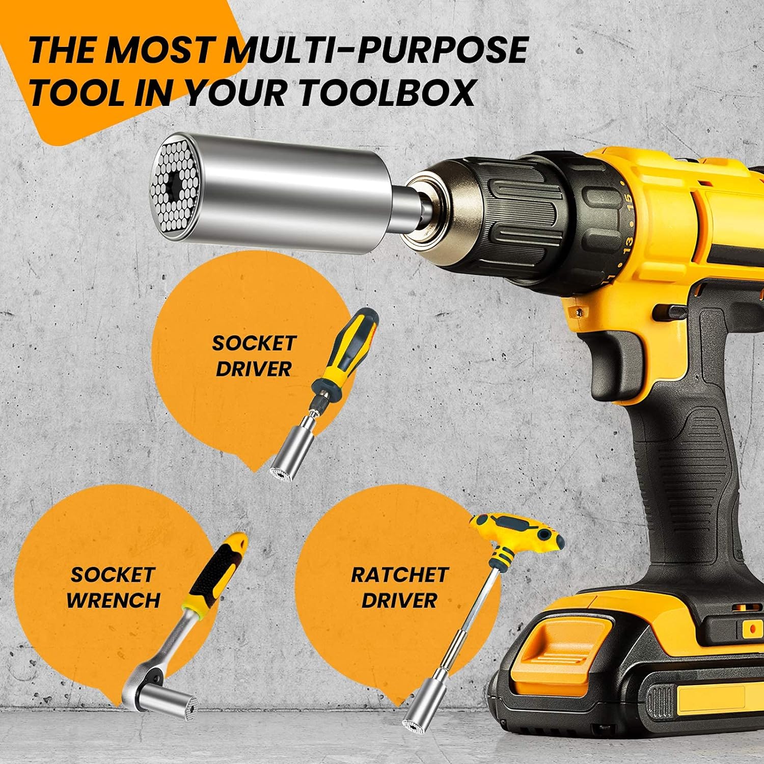 - Herramientas ampliamente utilizadas: la llave de tubo multifunción está equipada con un adaptador, que se puede conectar fácilmente con taladro eléctrico, destornillador eléctrico y destornillador de trinquete. De esta manera, la llave de vaso puede reemplazar todo tu juego de enchufes para usar en mejoras del hogar, construcción, carpintería, proyecto de bricolaje, reparación de automóviles, electricista y otros trabajos domésticos.