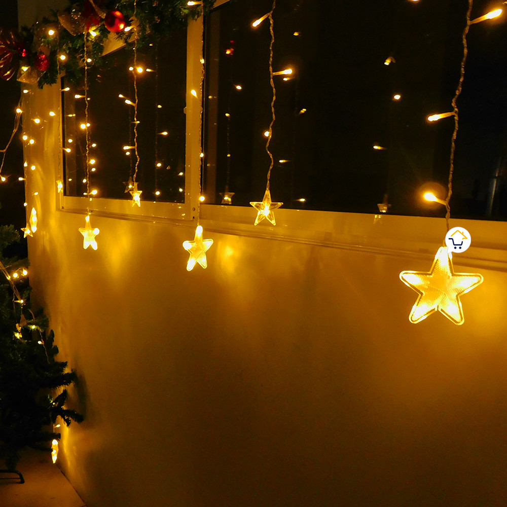 - Hermosas luces navideñas con estrellas intercaladas que llenarán de calidez cualquier espacio que desees decorar para las épocas festivas.