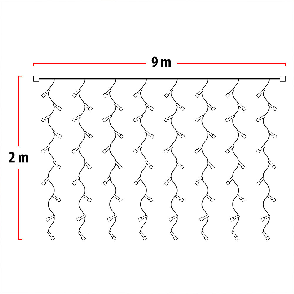 - Longitud luces: 9 metros de largo x 2 metros de caída.