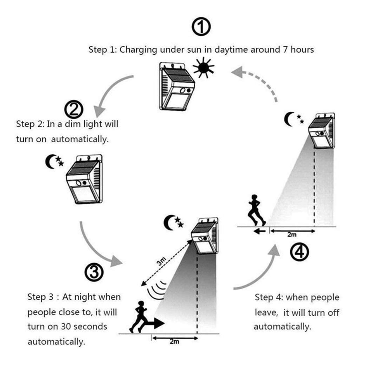 *Recargable con luz solar, almacena energía suficiente para toda la noche.