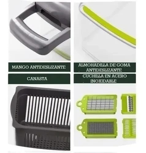 CORTADOR DE VERDADURAS MULTIFUNCIONAL -AYUDANTE DE COCINA EN ACERO INOXIDABLE DE ALTA RESISTENCIA @@Tu ayudante de cocina ideal, por el cual ya no tendrás inconvenientes al momento de cocinar, el conjunto de cuchillas multifuncionales en acero inoxidable tiene todo lo necesario para cortar, rebanar , rallar , y rebanar! Picar las cebollas, calabacines, pimientos, apio, tomates, huevos duros, queso, frutas y luego ver como la transferencia de ingredientes pasa instantáneamente a la superficie de corte al recipiente de abajo. ¡No hay problemas, y sin descubrir! más agradable con el Plus ya no es un problema ya que tiene todo en un sistema práctico! Sencillo y ahorro de espacio como se pone. @@Cortador de verduras, 15 en 1, @cortador @multifuncional de @mandolina cortador y
