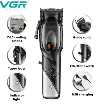Cortadora de pelo VGR, cortadora de pelo profesional con Motor magnético de alta potencia, con cabezales recubiertos de DLC y palanca de ajuste de tamaño
