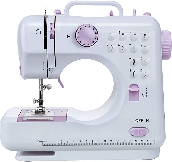 Múltiples funciones prácticas: Con 12 patrones de puntada / rebobinado automático de hilo / mangas de costura / cajón incluido, para guardar cosas pequeñas / luz de costura integrada / cortador de hilo integrado, cinta métrica, ajuste de tensión/costura hacia delante / agujero de botón / doble velocidad (alta y baja).