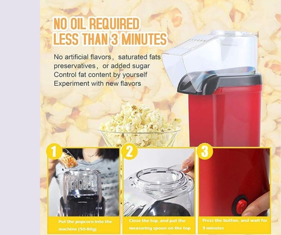 - Rápida y de alta eficiencia: el sistema de popping eléctrico utiliza aire caliente en lugar de aceite, la tasa de explotación del artículo es del 95% ofreciendo 18 tazas de palomitas de maíz rápida y eficiente con casi sin granos sin estallar. Nota: para asegurarse de que la mayoría de los granos entran en palomitas, la unidad debe funcionar con enchufe de pared de 120 V/60 Hz.