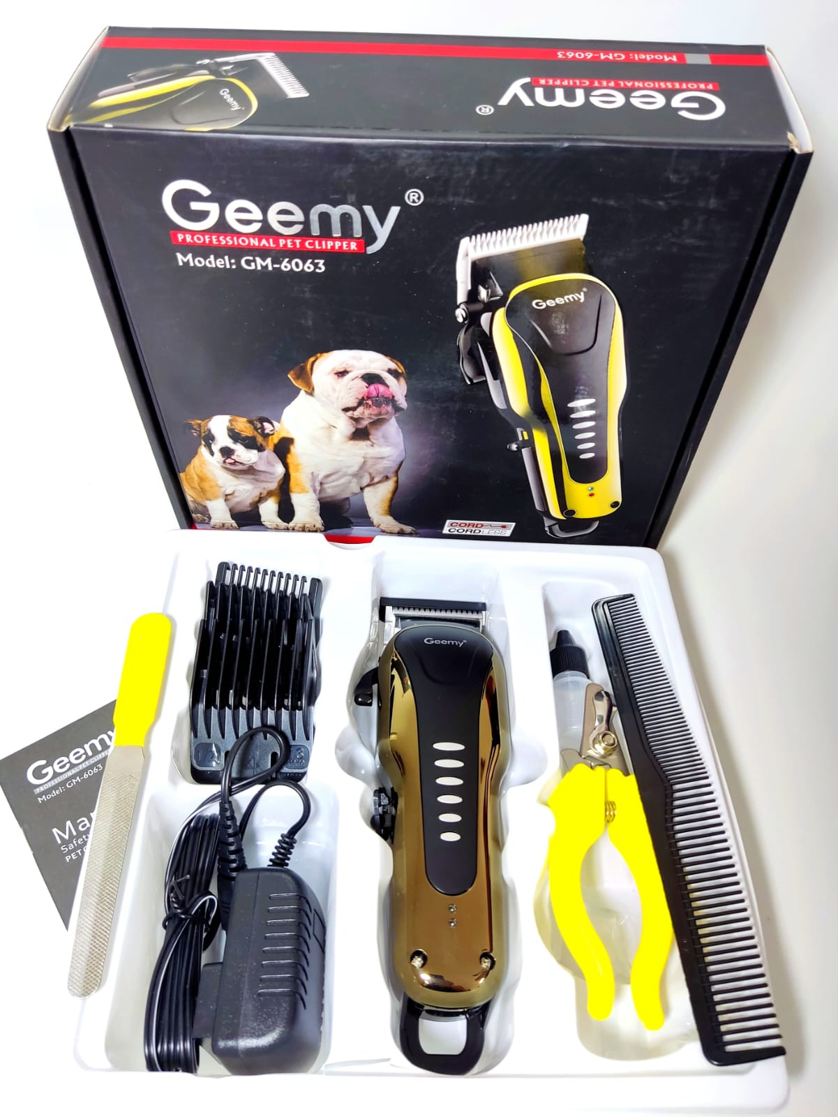 -Kit Peluquería para mascotas de marca Gemei en color negro/dorado.