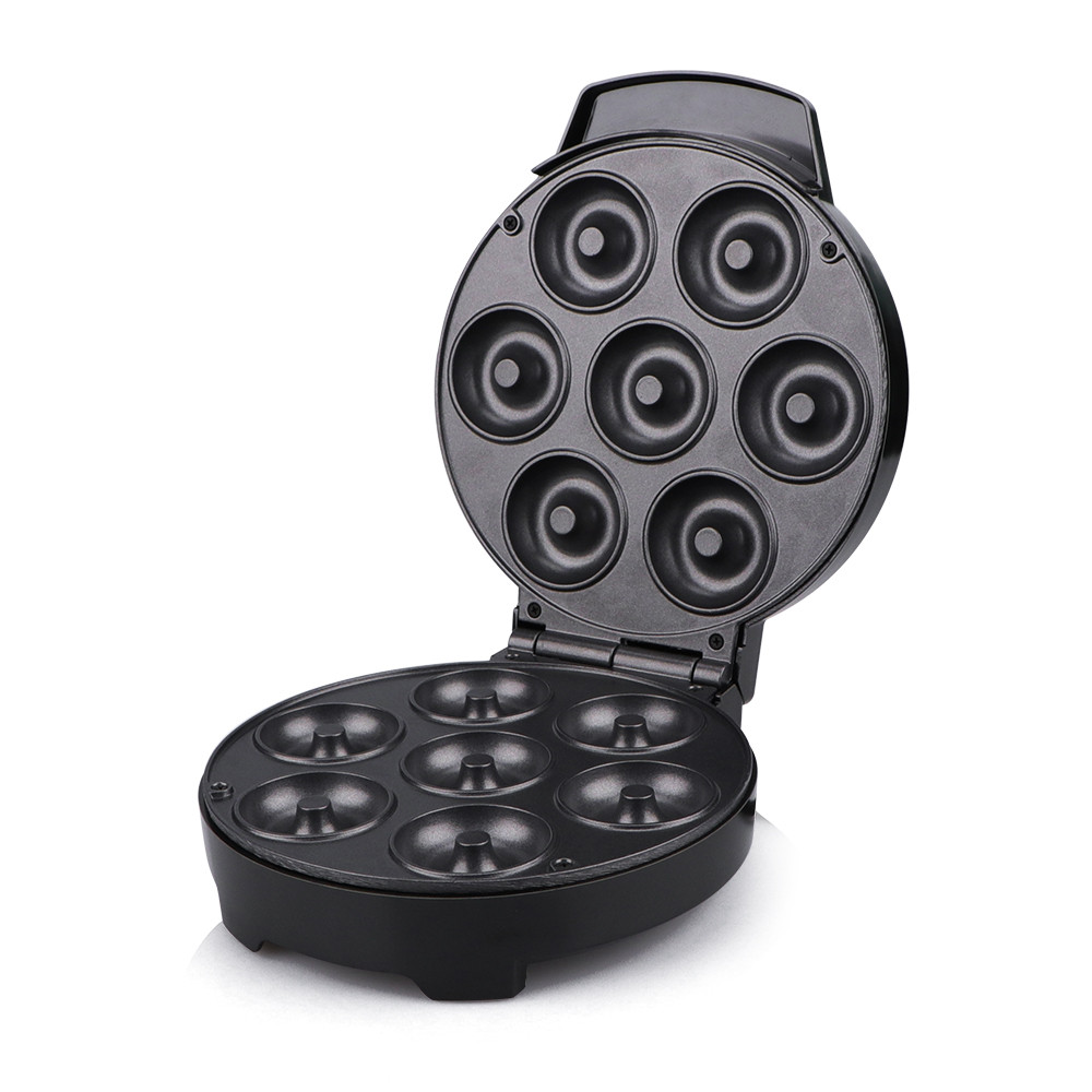 Esta máquina te permite hacer 7 deliciosas mini donas en minutos. Simplemente vierta la masa en los moldes, cierre la tapa y espere a que la luz indicadora se ponga verde. No requiere freír ni horno, disfruta de donas frescas y caseras en cualquier momento.