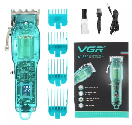 VGR-cortadora de pelo transparente con pantalla Digital V-660, recargable, electrico