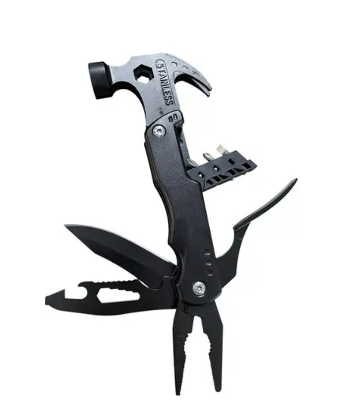 excelente accesorio multifuncional para acampar: este martillo multiherramienta es perfecto para cualquier emergencia, campamento, expedición, senderismo, viajes, actividades al aire libre, proyectos de bricolaje y mucho más. Puede cortar, hacer palanca, clavar clavos, apretar tornillos, abrir bocas de incendios, serrar madera y ser lo suficientemente fuerte como para romper paredes cortinas de vidrio, cortar cortinas de cuerda en escapes peligrosos y más.