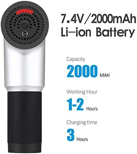 Batería de litio recargable. El masajeador dispone de una batería de litio de alta calidad de 2000 mAh y una larga duración de la batería. Batería de litio de 7,4 V con un tiempo de funcionamiento medio de más de 1,5 horas.