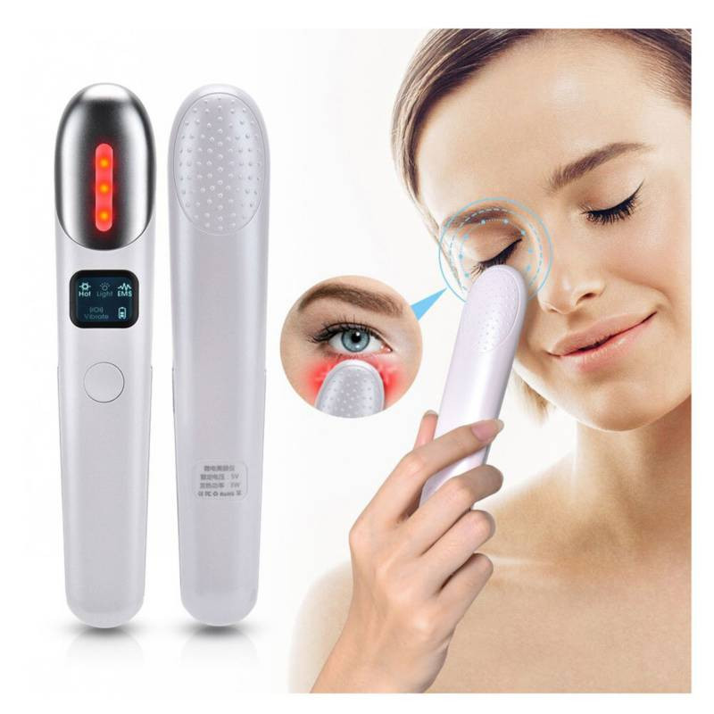 Masajeador ojos df-666 blanco eléctrico terapia luz roja 3 niveles 1[multifunción diseño] el instrumento de belleza ocular 4 en 1 de gama alta brindará vibración de alta frecuencia, de calentamiento constante compresa caliente, terapia de fotos de luz roja y micro corriente ems , que puede facilitar la regeneración de colágeno y la circulación sanguínea para aliviar la fatiga ocular y relajar la tensión muscular, también puede reducir la melanina, tensar la piel y eliminar las arrugas, bolsas para ojos, ojeras, etc.