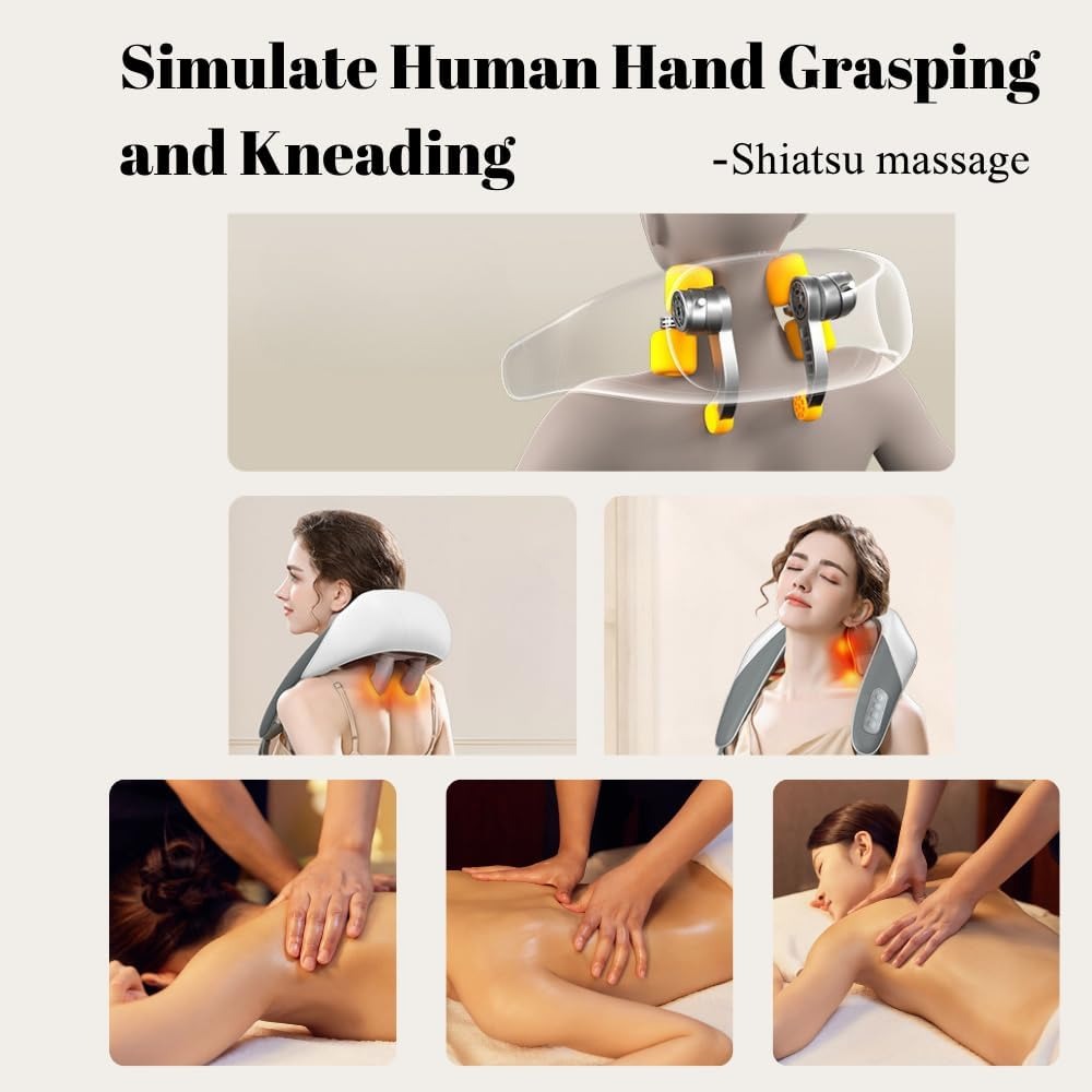 Una máquina masajea todo el cuerpo: Estos masajeadores de cuello y espalda están diseñados para ser ergonómicos y portátiles, ajustándose a la curva del hombro y la espalda. Son inalámbricos y ligeros, libres de restricciones y fáciles de mover. Con un peso de solo 1100G, le permite disfrutar de la relajación en cualquier momento y en cualquier lugar. Estos masajeadores se pueden usar no solo para hombros, cuello, pantorrillas, cintura y muslos, sino para todo el cuerpo. Esto le permite disfrutar de un masaje corporal completo con una sola máquina.