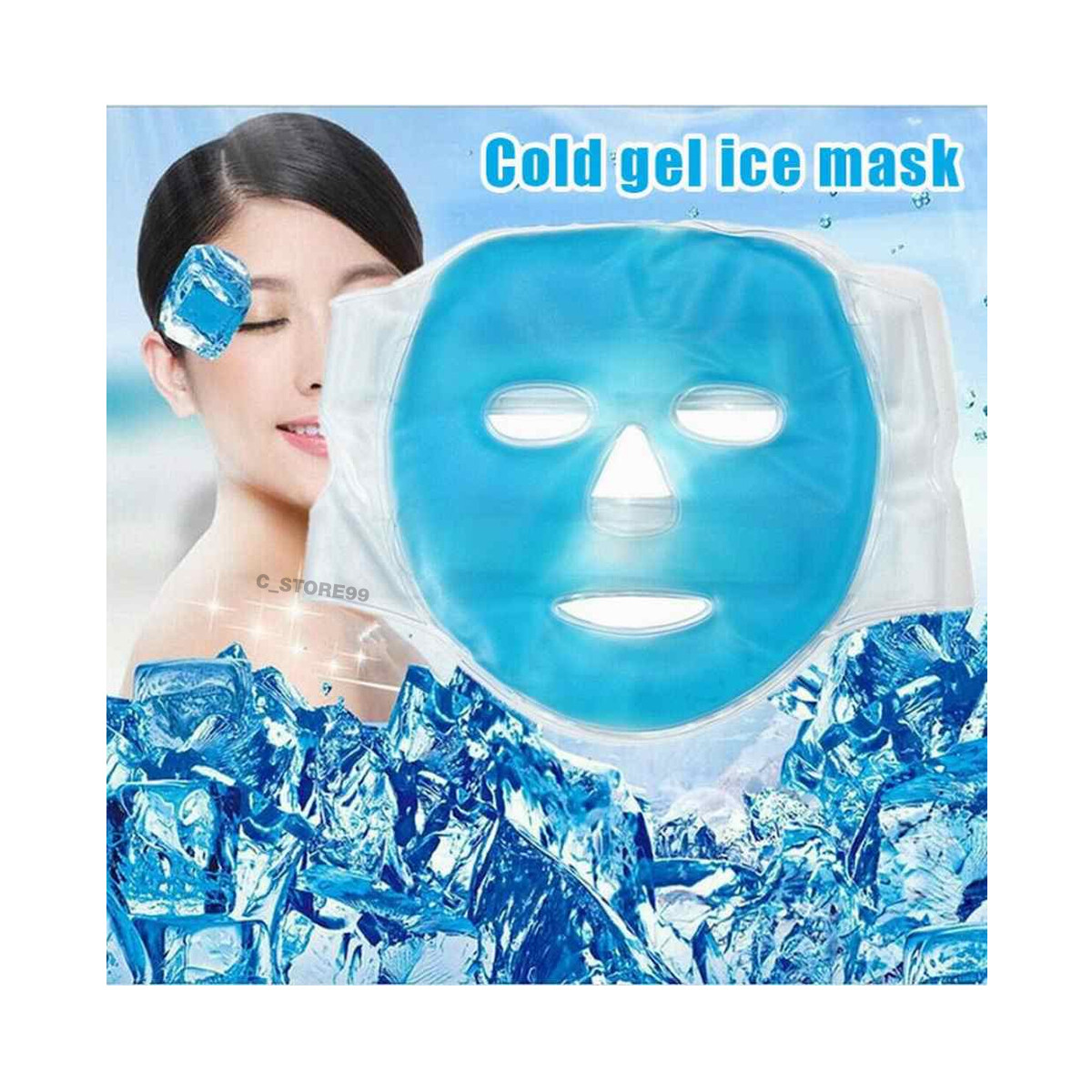 Mascarilla de Gel frío para la cara máscara de compresión de hielo, mascarilla de enfriamiento Facial completa azul, almohadilla de relajación para aliviar la fatiga, paquete de frío para el cuidado de la piel Facial