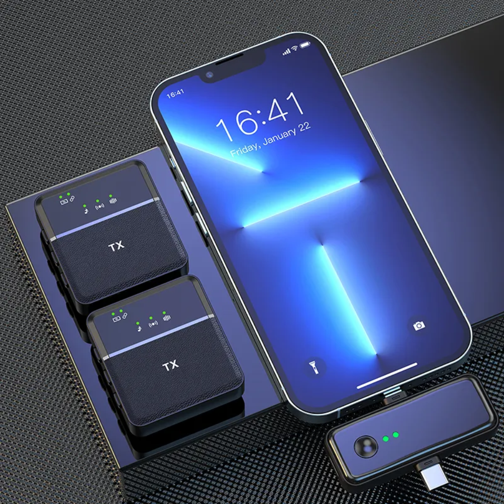 2 MICRÓFONOS DE SOLAPA PARA TRANSMISIÓN EN VIVO ÚTIL SIN OBSTÁCULOS BATERÍA DE LARGA DURACIÓN 2,4 GHZ WIFI INALÁMBRICO MICRÓFONO GRABACIÓN DE VÍDEO RECEPTOR CON INTERFAZ TIPO C Y LIGHTNING
