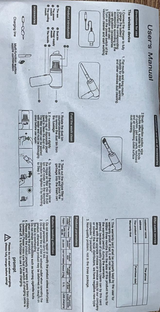 Portátil y conveniente: la aspiradora de mano inalámbrica es ligera y portátil, lo que le permite disfrutar de la limpieza y la comodidad en cualquier momento y en cualquier lugar.