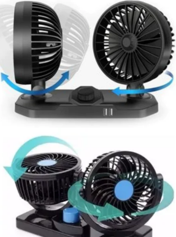 Diseño de doble cabezal y 360° Rotación: El 360°La cabeza del ventilador Rotatabe de dos cabezales brinda frescura a cada esquina del automóvil ajustando la dirección de flujo de aire de cada ventilador y asegurándose de que cubra todas las áreas de su vehículo.