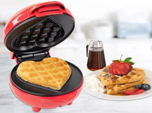 Mini Waflera Eléctrica Antiadherente Forma De Corazón 350w