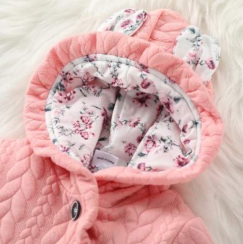 Mono de bebé forrado engrosado con capucha de manga larga con volantes en 3d orejas 3d