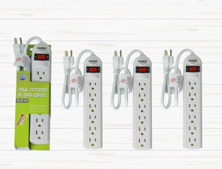 Multitoma para conectar varios artículos eléctricos. Viene con práctico interruptor para encender/apagar la corriente del cable. 0,6 mt. De longitud. Marca Platino