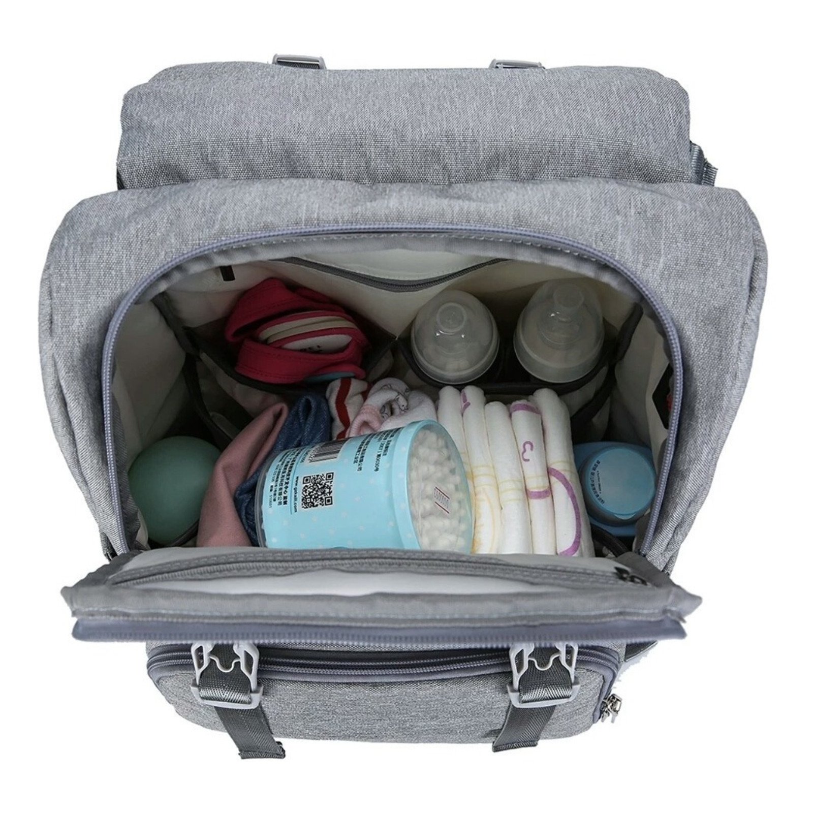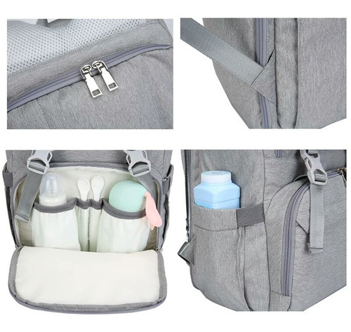 Gran espacio, fácil de llevar una casa en movimiento Con ganchos para cochecito, fácil de cambiar a una bolsa de rodillo Con bolsa de ropa húmeda, no te preocupes por tu ropa húmeda 2 bolsas para botellas de aislante termico para mantener la leche caliente Puede cambiar a una almohadilla de pañales, un muy buen ayuda para que mamá cambie pañales en cualquier lugar Diseño de tejido extraíble de bolsillo lateral, consigue la servilleta en 1 segundo para limpiar la nariz del bebé Con puerto de carga usb, no necesitas sostener el banco de energía para usar la mano, de carga en cualquier momento