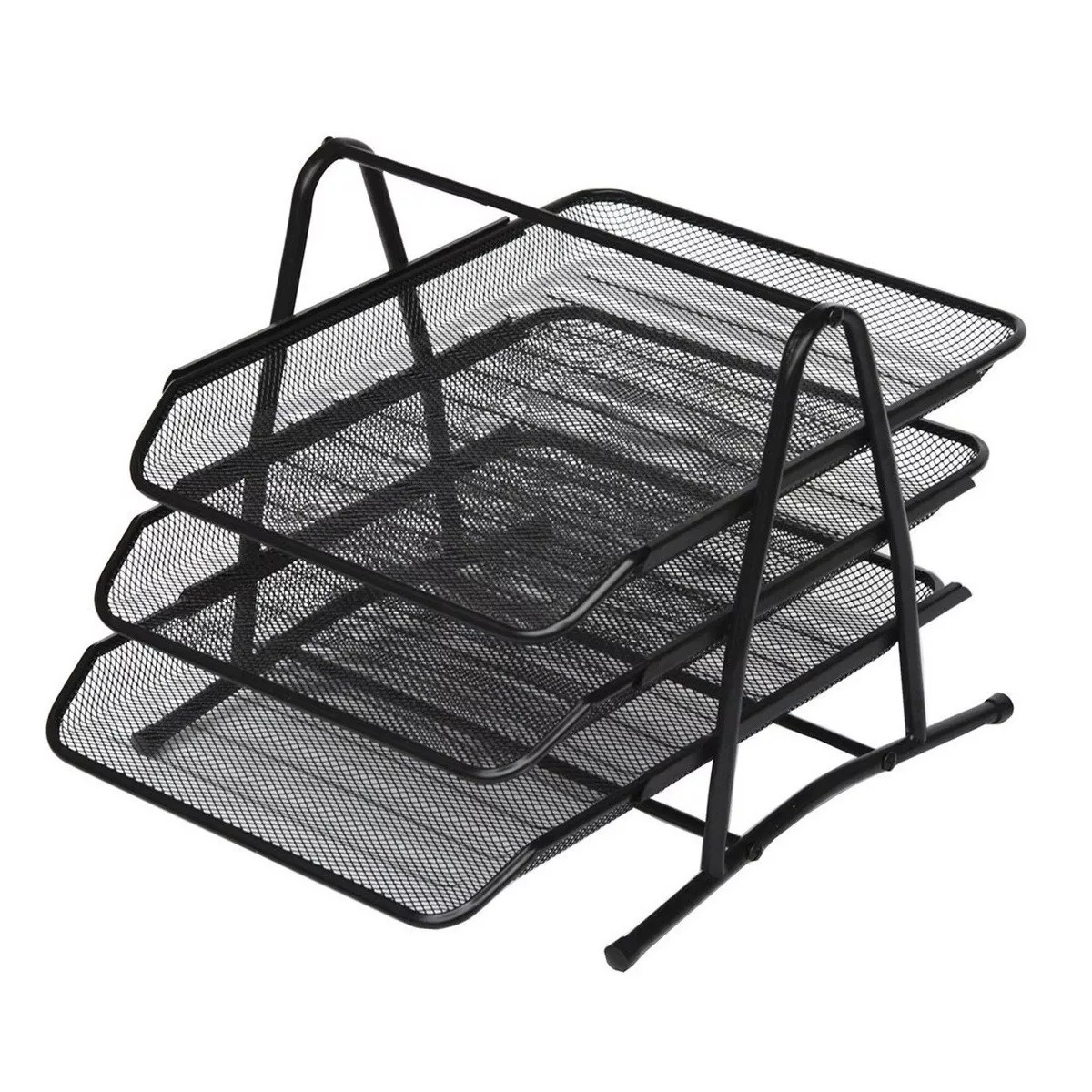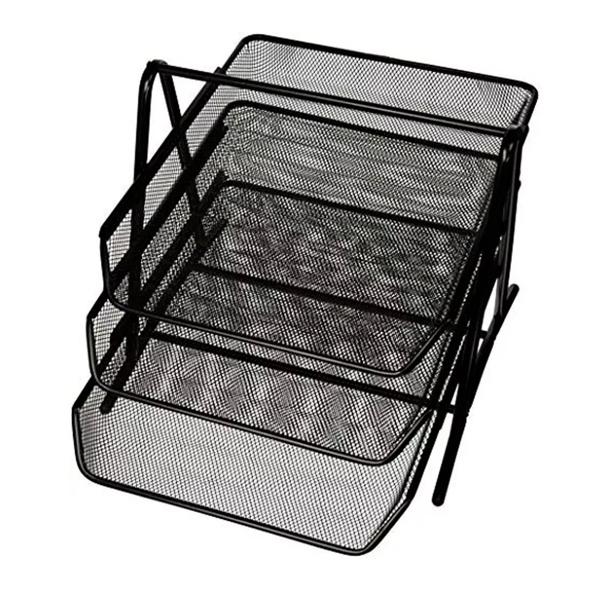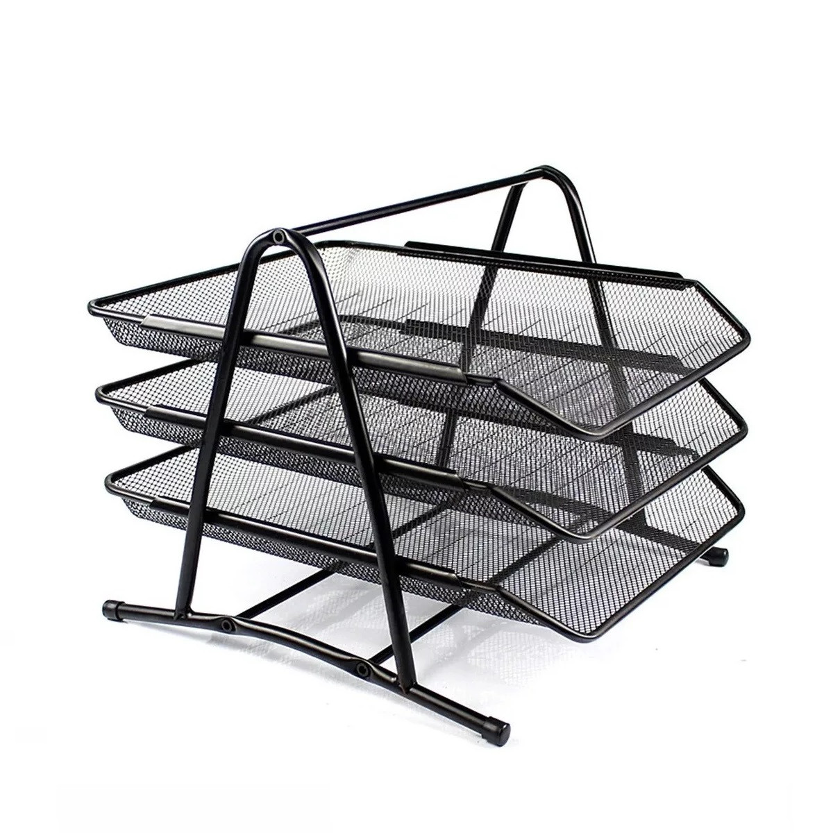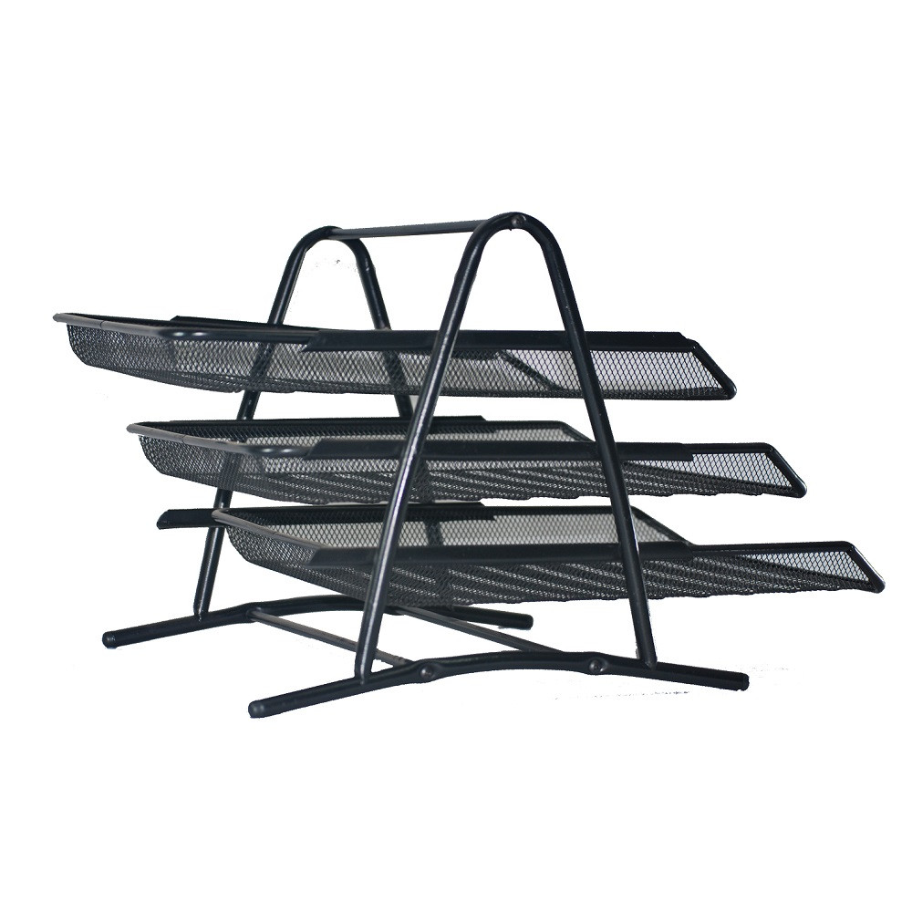 Organizador de escritorio en malla metálica de 3 niveles con bandejas extraíbles. Ideal para almacenar documentos, cartas, papeles, carpetas, facturas, formularios de correo, artículos de papelería y otros accesorios de escritorio.