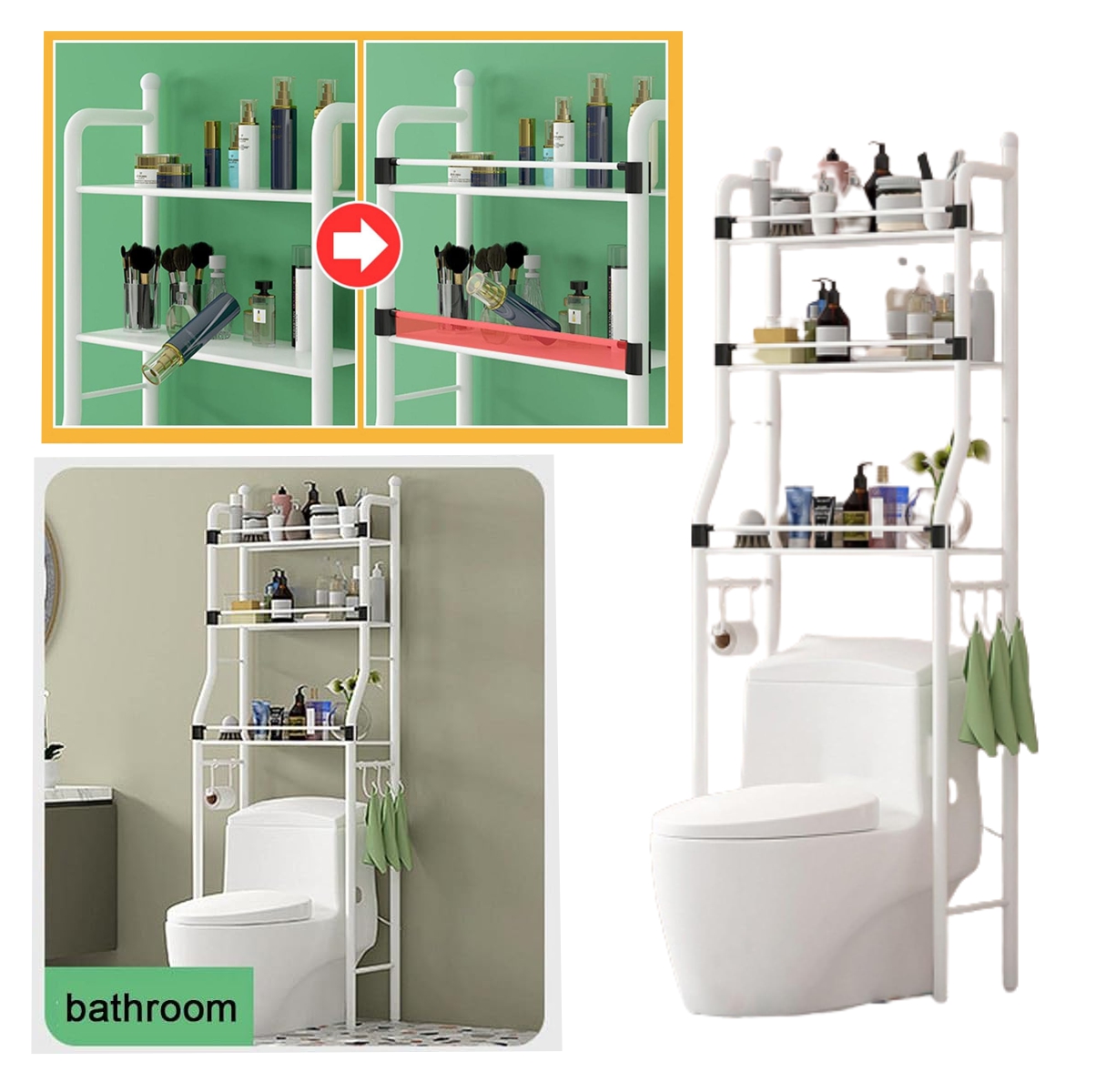 Nuestra estantería de almacenamiento de 3 niveles sobre el inodoro es la solución perfecta para crear espacios de almacenaje adicionales, te permite organizar fácil tu Baño o demas espacios.