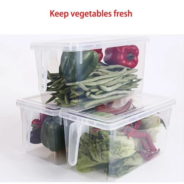 Descubre la solución perfecta para mantener tus alimentos frescos y organizados con nuestro contenedor de almacenamiento para nevera y despensa. Con tapa, manija y transparente, este contenedor ofrece una visibilidad instantánea de su contenido, permitiéndote identificar rápidamente lo que necesitas sin tener que abrirlo.