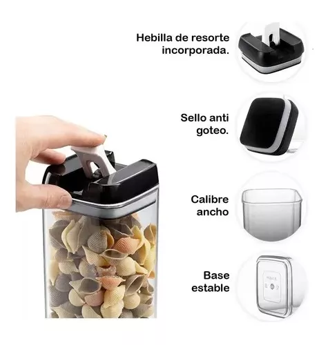Estos recipientes cuadrados duraderos han sido diseñados para minimizar el espacio, son apilables y caben fácilmente en su refrigerador, congelador o alacena, lo que le permite organizar la cocina. Estos recipientes transparentes también son fáciles de limpiar. No sólo son ideales para almacenar alimentos secos, sino que también son para contener agua, jugo, sopa y más.