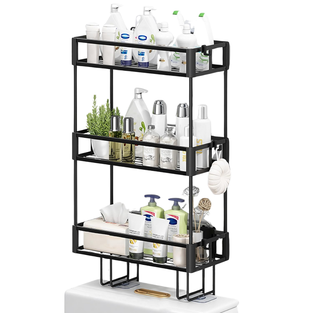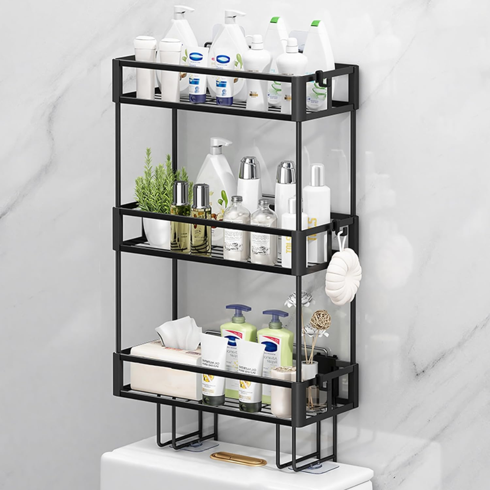 Excelentes labios para evitar caídas: El estante de almacenamiento sobre el inodoro con 3 niveles, siempre tiene un diseño de labios y aumenta la altura a 7cm pulgadas para evitar caídas. Suficiente espacio y seguridad para poner todos los artículos ordenados y ordenados, di adiós al desorden.