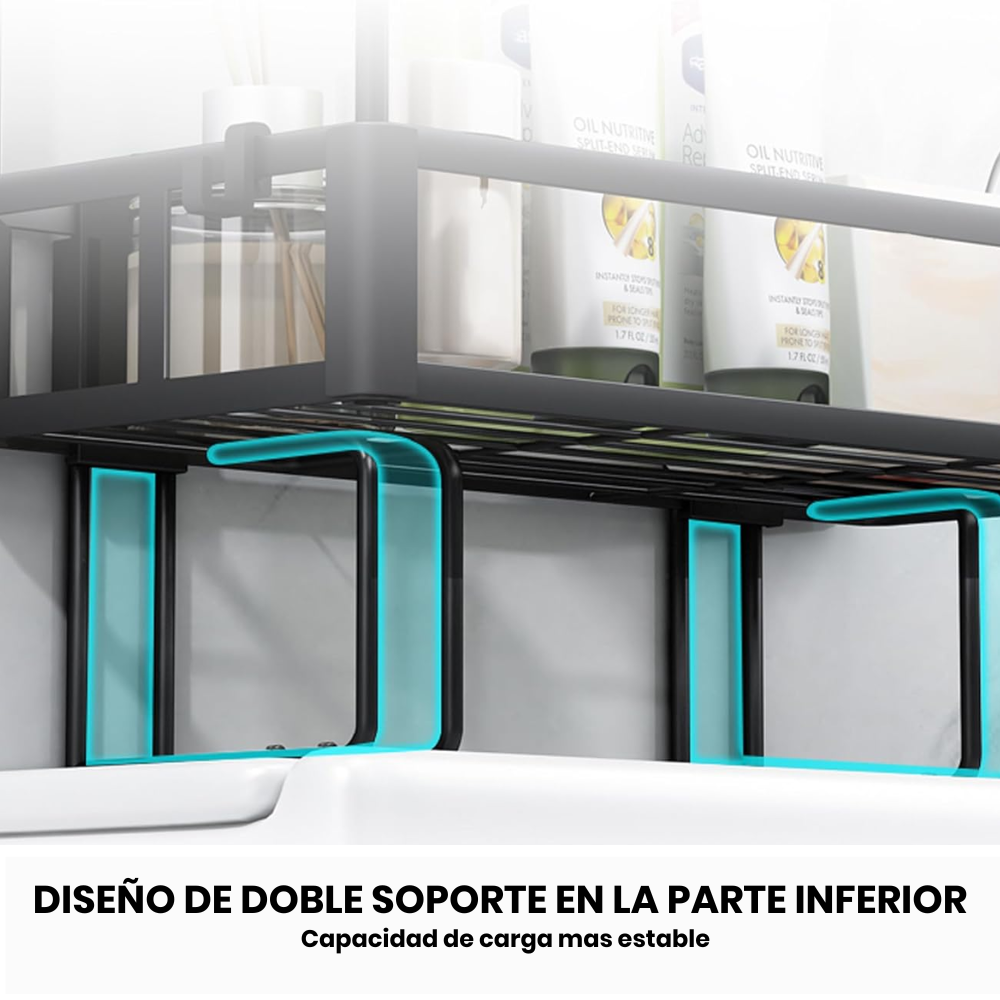 Con 6 ganchos extra ajustables para que puedas colgar un poco de iterm, como cepillo, toalla, cualquier cosa que necesites Utilizando eficientemente el espacio lateral.