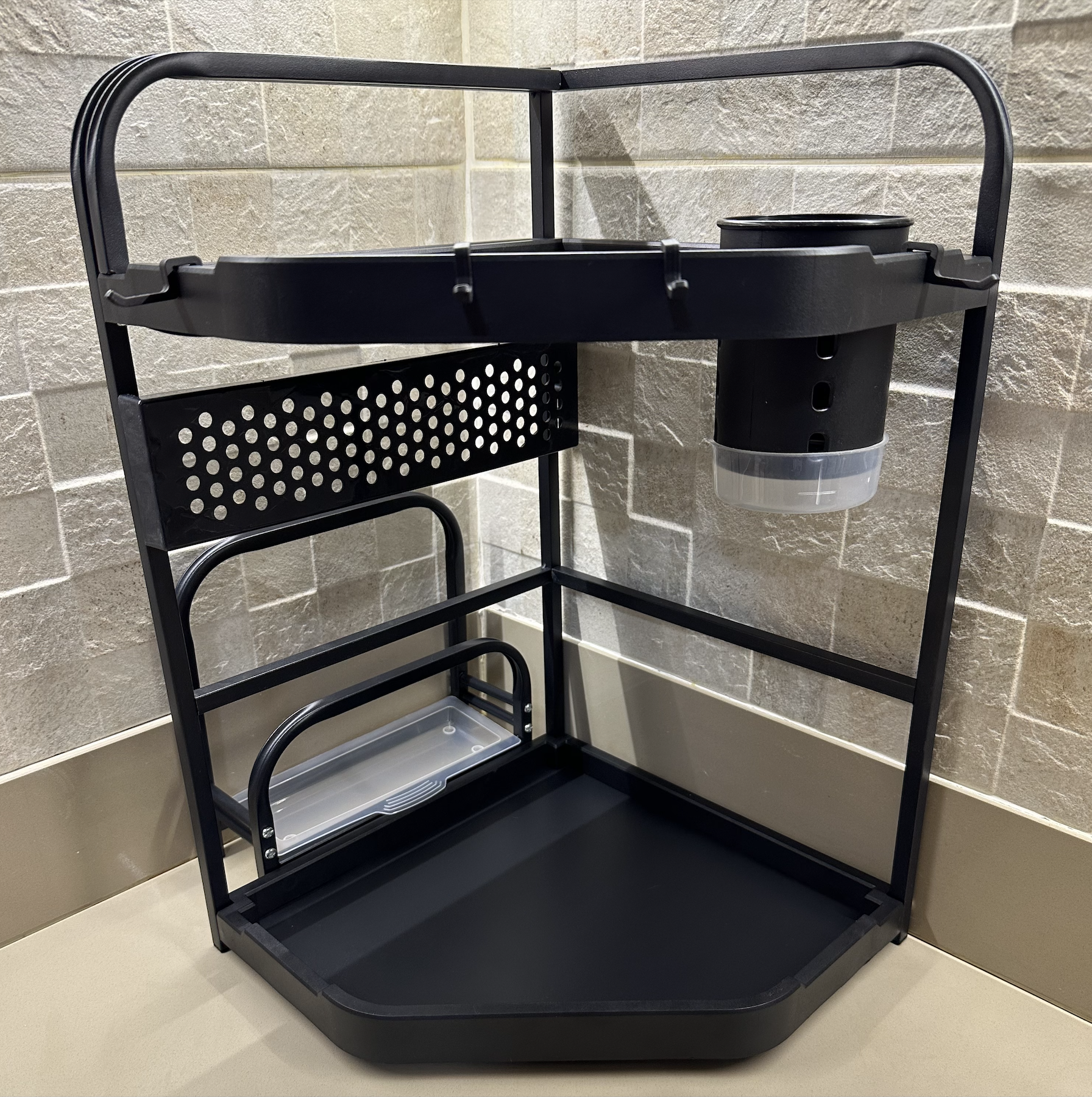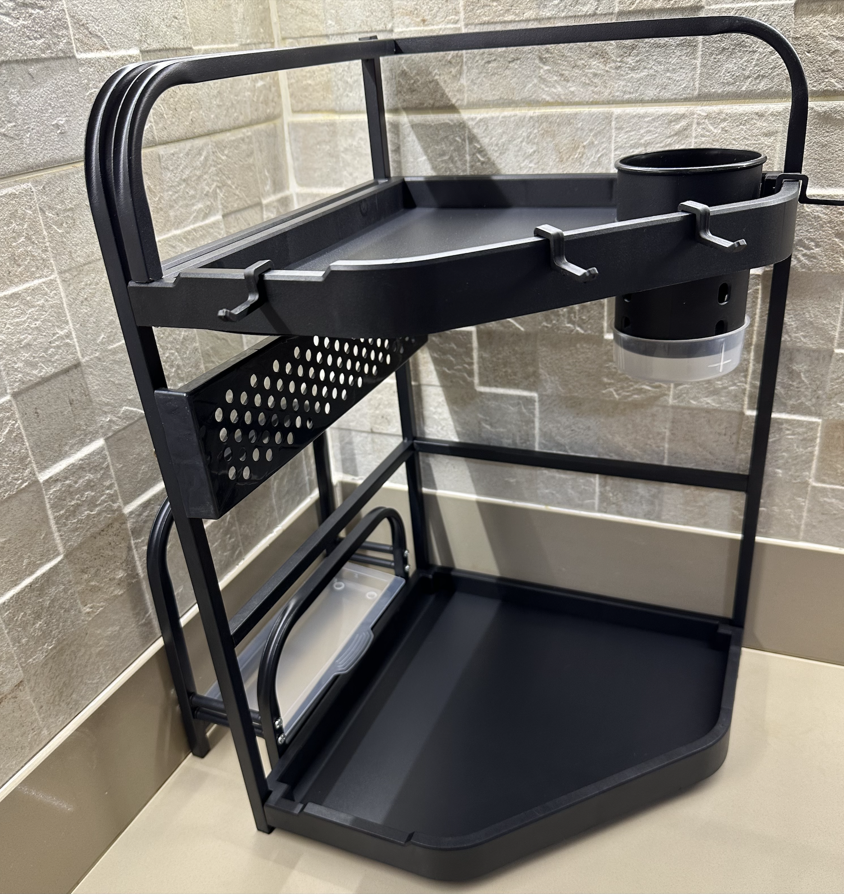 - Soporte de estante de esquina de 2 niveles y ahorro de espacio. Maximiza el espacio de tu encimera. El organizador de especias aprovecha el espacio vertical, para ofrecer un montón de espacio para contenedores sin ocupar mucho espacio en la encimera, ahorrando espacio. Haz las cosas bien organizadas y ordenadas y crea un microambiente cómodo para tu hogar u oficina. Di adiós a tu encimera desordenada.