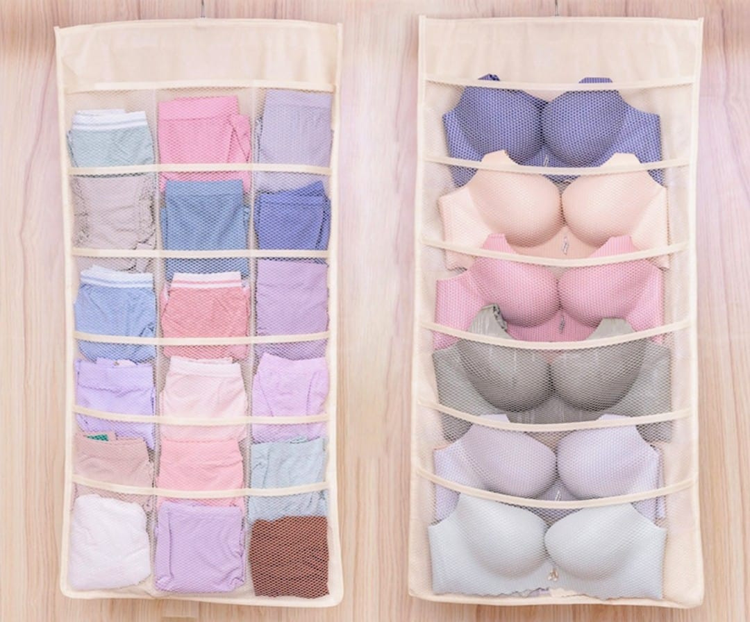 Espectacular organizador de ropa interior, este producto te permite ahorrar espacio en tu closet, podrás tener organizada tu ropa interior como pintes, brasieres y vestidos de baño de dos piezas.