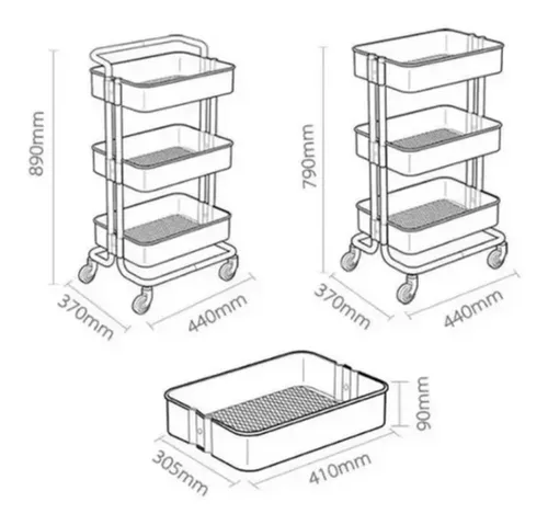 Este carro multifuncional es fácil de almacenar y transportar. Se puede utilizar como carritos de utilidad, carritos de baño, carros de almacenamiento de cocina, carros de comedor, carros de servicio, estantes de almacenamiento, carros de herramientas, y mucho más. Adecuado para cocina, sala de estar, baño y otras escenas.
