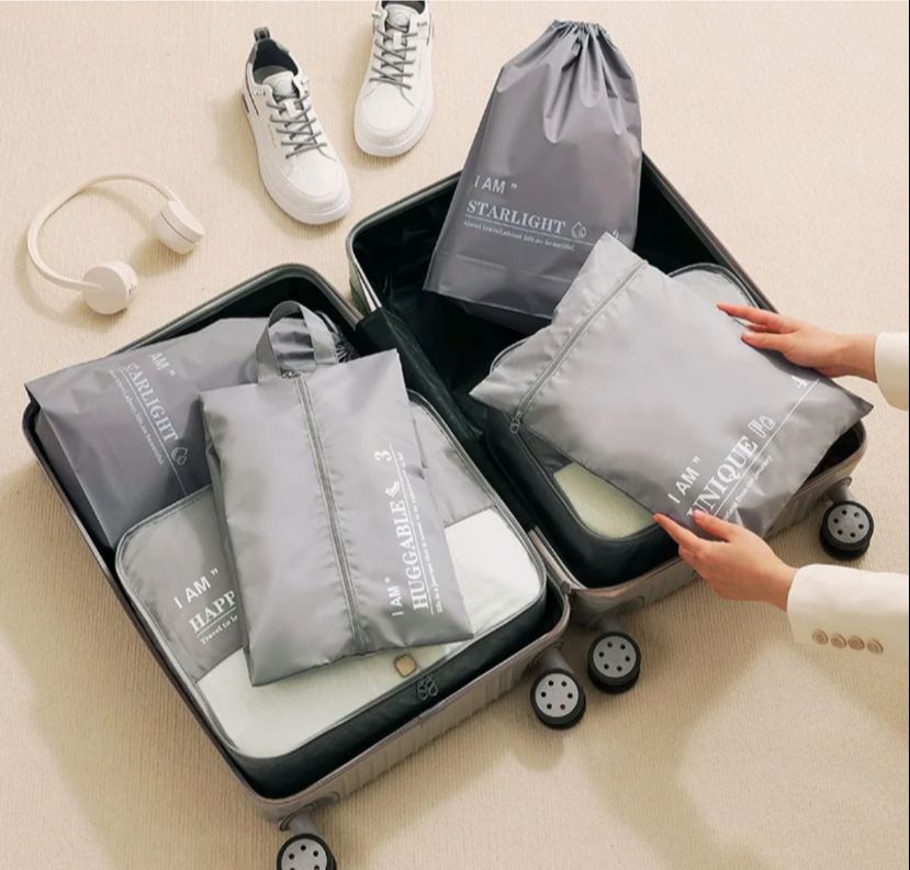 Increíble set de bolsas en tela para organizar tu maleta de viajes.