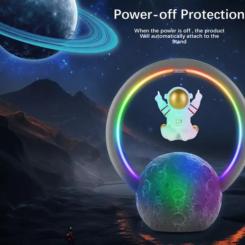 LEVITACIÓN MAGNETICA ASTRONAUTAltavoz inalámbrico con diseño de levitación magnética, y con el muñeco astronauta, los altavoces Bluetooth son más cool y de moda. La apariencia del astronauta es amado por muchas personas. es un pequeño altavoz bien construido y se ve hermosa no importa en qué esquina se pone esta pantalla de altavoces en su casa