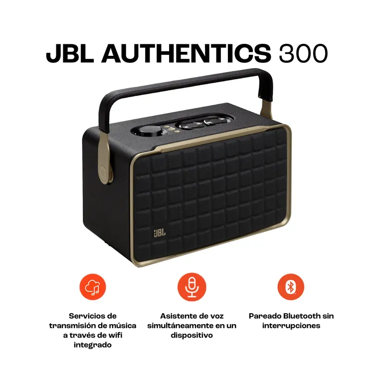 1 JBL Authentics 300<br>1 cable de alimentación<br>1 guía de inicio rápido<br>1 hoja de seguridad<br>1 tarjeta de garantía