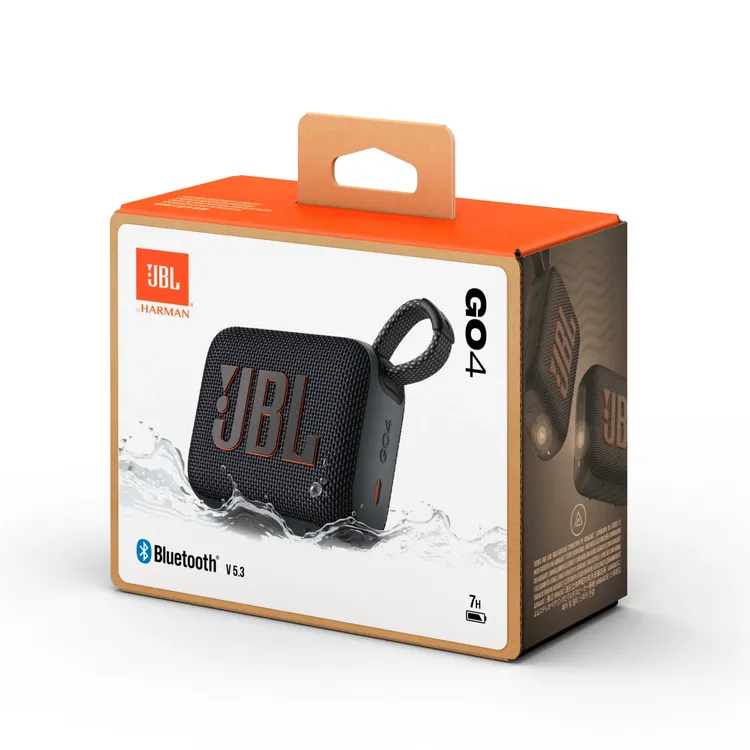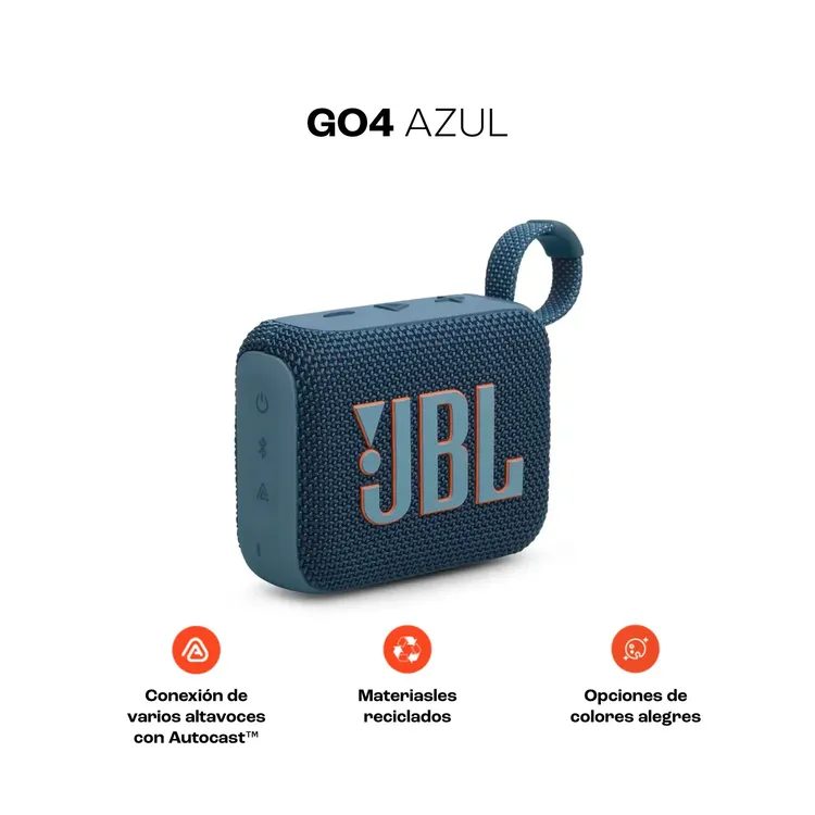 El altavoz JBL GO 4 incorpora plástico reciclado posconsumo y tejido también reciclado para la rejilla del altavoz.