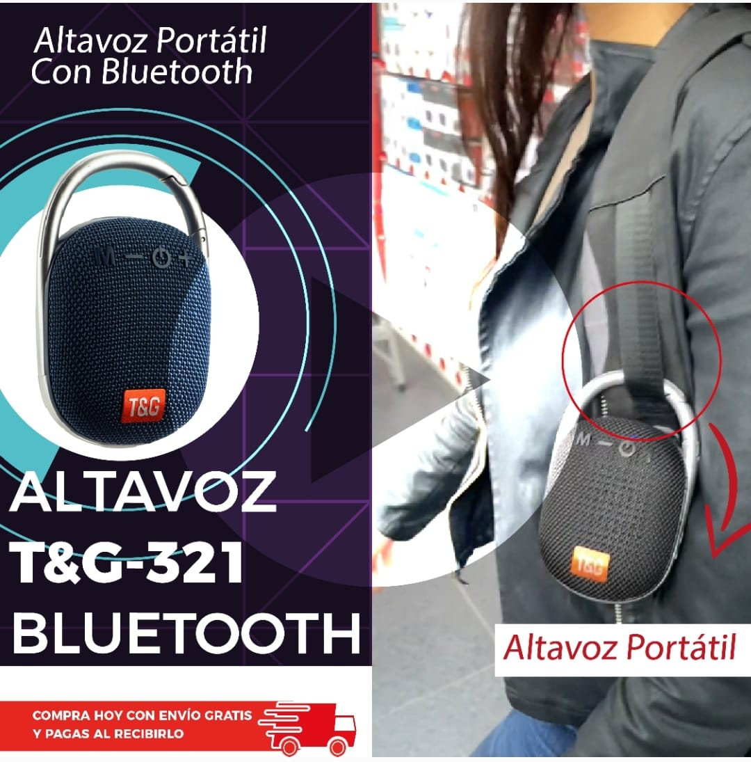 Parlante portátil T&G 321. Reproduce música vía Bluetooth, USB, micro SD y además tienen radio FM. También podrás contestar las llamadas cuando tu celular esté conectado al parlante. Ideal para llevarlo contigo a estar en la piscina, en un parque, en tu casa con amigos.