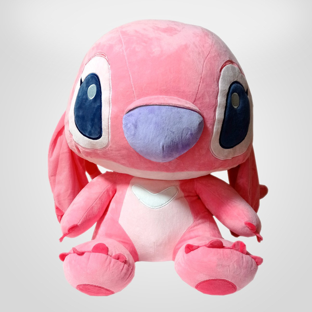 Stich Rosa de peluche maravilloso fabricado con algodón siliconado y con felpa fina extra suave. Totalmente antialérgico ideal para abrazar y disfrutar 27cms de medida sentado.