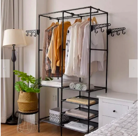 Práctico Perchero: Este estante de ropa puede colocarse en la esquina de un dormitorio o salón como un elemento esencial para el hogar que no ocupa mucho espacio. Además, este perchero de pie es suficientemente ligero para moverse directamente y fácilmente. Diseño de gran capacidad, almacena muchas cosas. La parte superior del closet es perpendicular al suelo y puede colocarse contra la pared.
