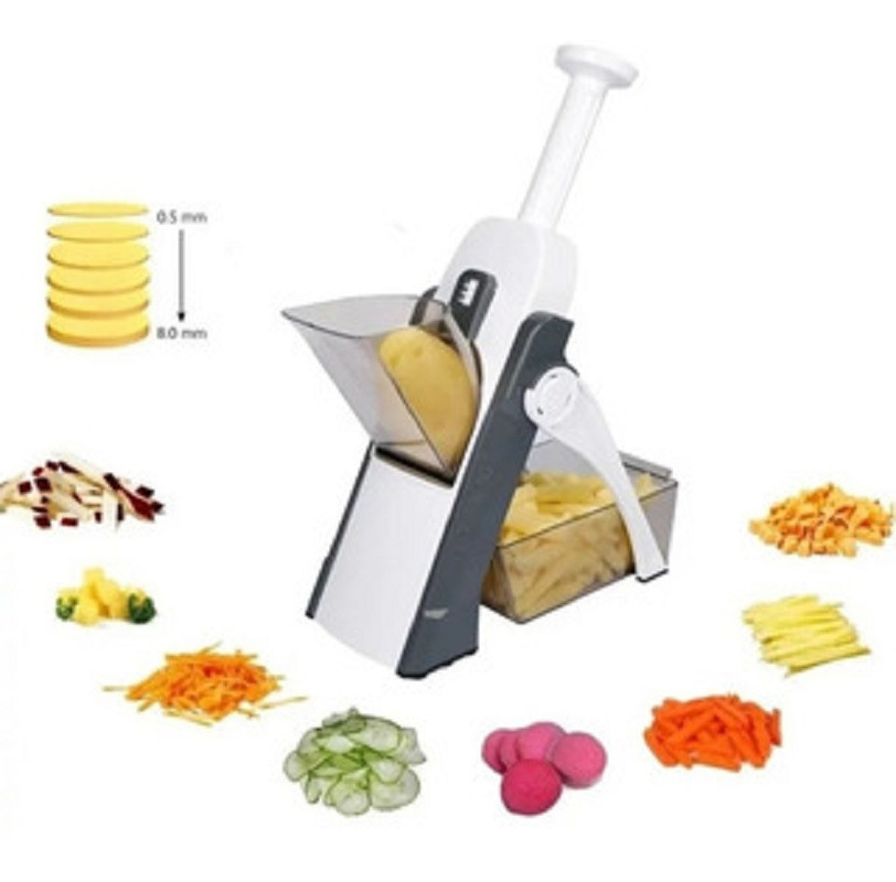Rodajas Los cortes mandolina perfectamente incluso de 1-8mm de espesor mientras que también ofrece juliana, fósforo y las opciones de cortar en cubitos. Completa con una guía de recetas de platos que incluyen col o de papas fritas, La mandolina seguro de la rebanada hace preparación de la comida rápida y fácil. Fácil de montar.