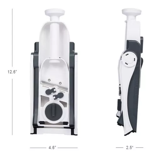 La cortadora de recurso reduce su tiempo, esfuerzo y habilidad para cortar frutas y verduras. Es más rápido, fácil y seguro preparar todos los ingredientes que necesita para comidas saludables y deliciosas. Con docenas de configuraciones y un diseño fácil de usar, fácil de limpiar y fácil de almacenar. La bandeja de recogida está incluida en el juego. @@• Ideal para cortar frutas y verduras. @• Posee 24 opciones de corte y 8 grosores diferentes. @• Cuchillas en acero inoxidable. @• Contiene: Recipiente para almacenar los cortes y cepillo de limpieza. @• Posee en su mango un recurso el cual permita que realice el corte. @• Disponible varios colores, por favor pregunte por disponibilidad @@Sistema de tres cuchillas: no es necesario cambiar las cuchillas, ya que están integradas y se adaptan a muchos estilos de corte @@La manija se bloquea cuando está doblada o sin usar para mayor seguridad.