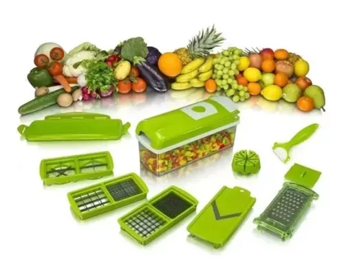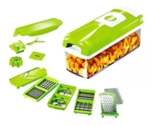 Nicer Dicer Plus Ayudante De Cocina Cortador Picador Rayador PICA, CORTA, REBANA, RAYA, TRICEA, LÁMINA, PELA, EN SEGUNDOS ¡¡AHORRA TIEMPO!! El Nicer Dicer Plus es el mejor ayudante de Cocina al mejor precio del mercado. El cortador de alimentos más versátil y práctico del mercado Corta, ralla, pica… ¡en la mitad de tiempo! Ahora podrás preparar las recetas más elaboradas rápidamente y sin ningún esfuerzo. Simplemente selecciona una de sus 11 cuchillas y ponga la Fruta o verdura a cortar sobre ella, con presionar suavemente obtendrá los resultados en el recipiente hermético del Nicer Dicer Plus, aquí puede guardarlos con su tapa hermética o utilizarlos directamente. Nicer Dicer Plus es muy fácil de limpiar y todos sus accesorios pueden guardarse dentro del recipiente grande para tenerlo siempre en orden y a la mano. Gran calidad de producción y materiales de alta calidad con hojas de acero inoxidable