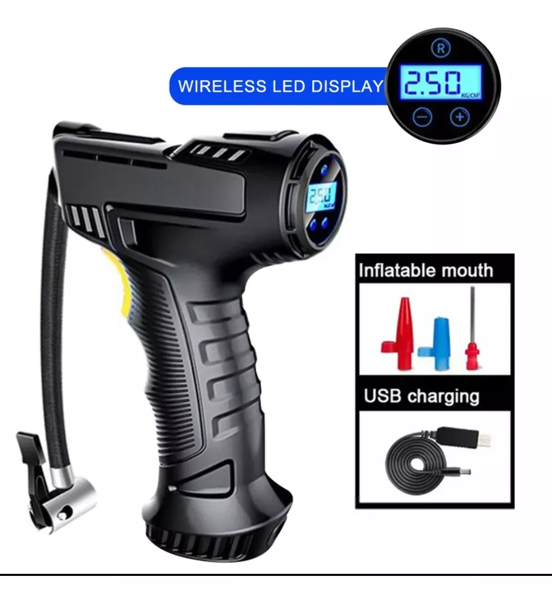 Bomba de aire compresor inalámbrico recargable de llantas