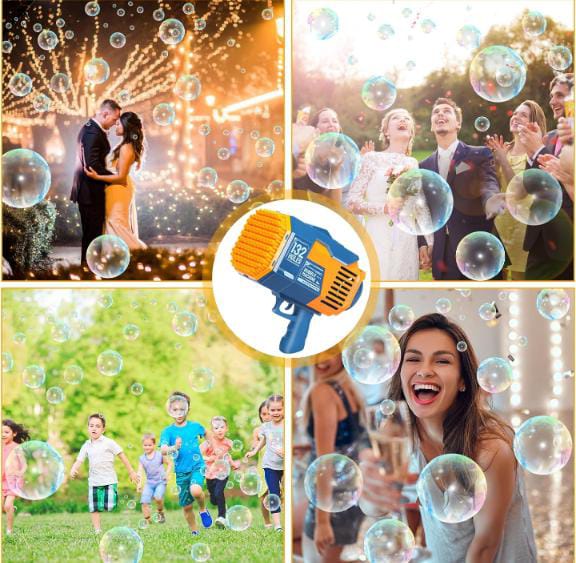 🫧Ametralladora de burbujas mejorada, tiene 132 agujeros de burbujas, que pueden soplar más de 9500 burbujas de colores por minuto.