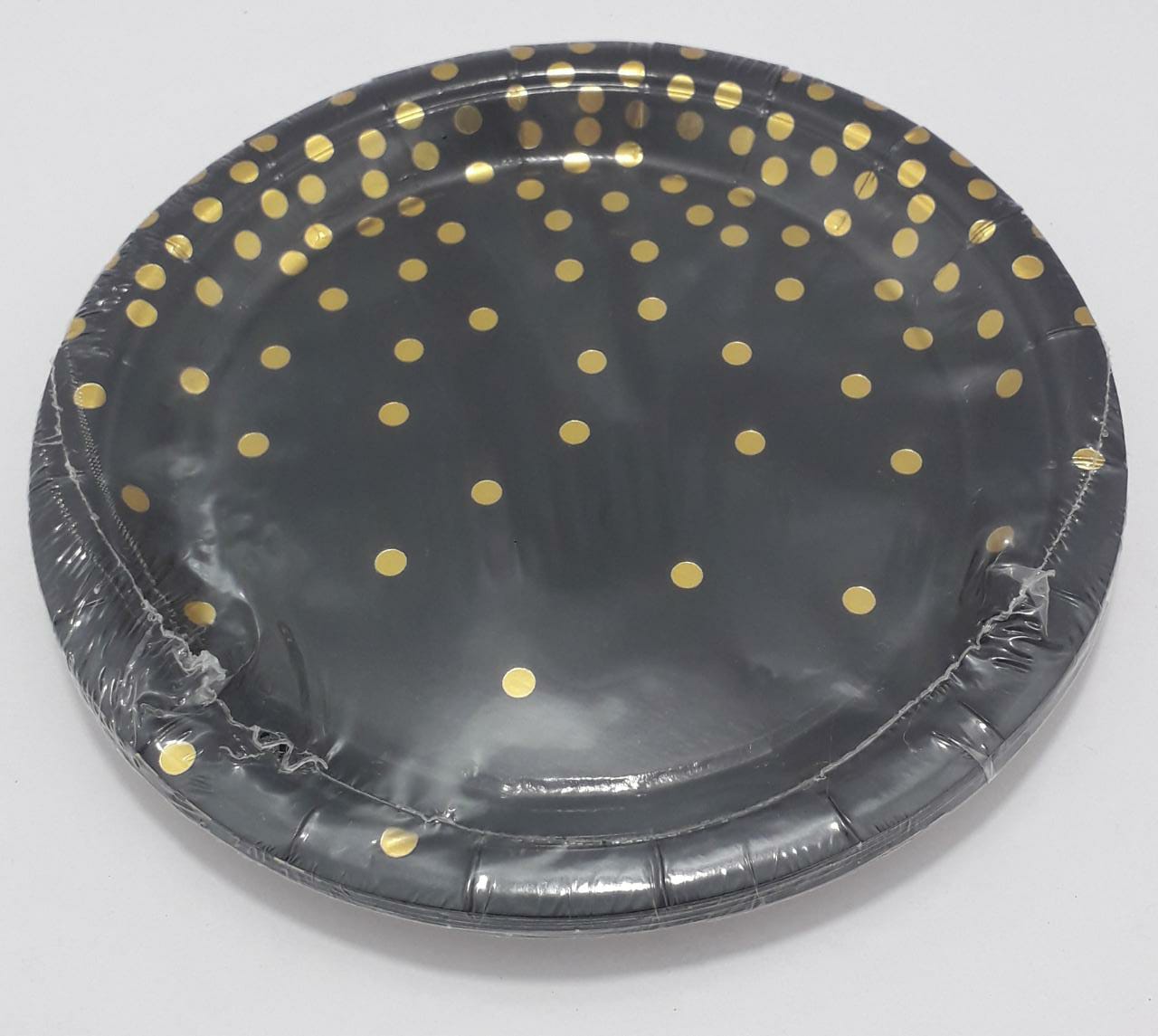 PLATO NEGRO PUNTOS DORADOS 18CM